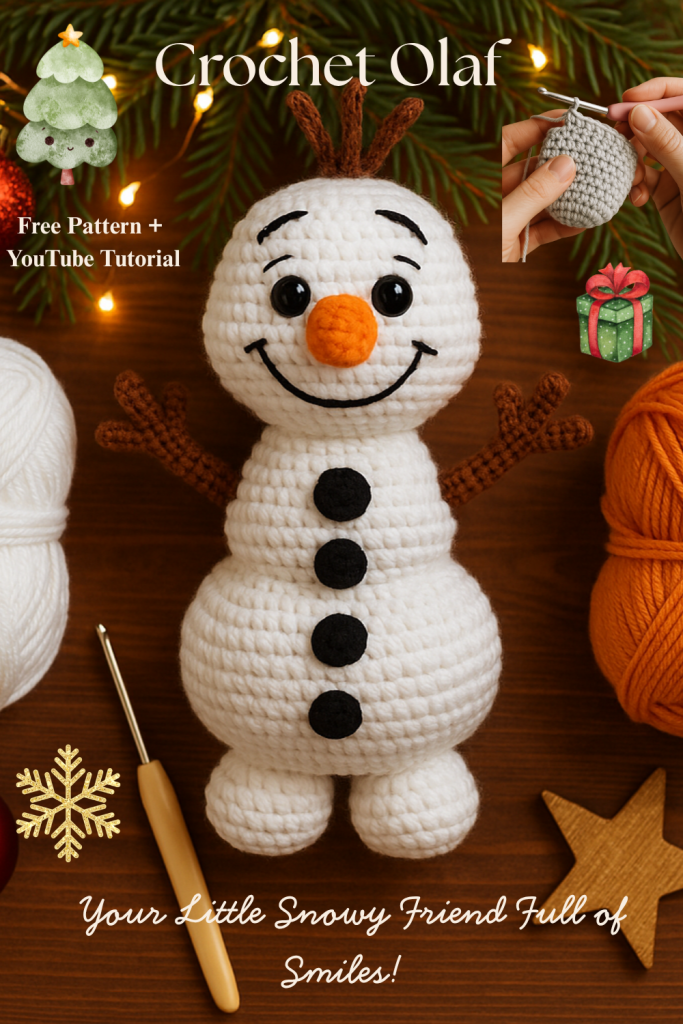 Thereβs something absolutely magical about Olaf β that warm-hearted snowman who dreams of summer and hugs! π₯° His big eyes, carrot nose, and endless cheer make him one of the most lovable winter characters ever, and crocheting your very own Olaf brings all that happiness right into your cozy Christmas season! πβ¨