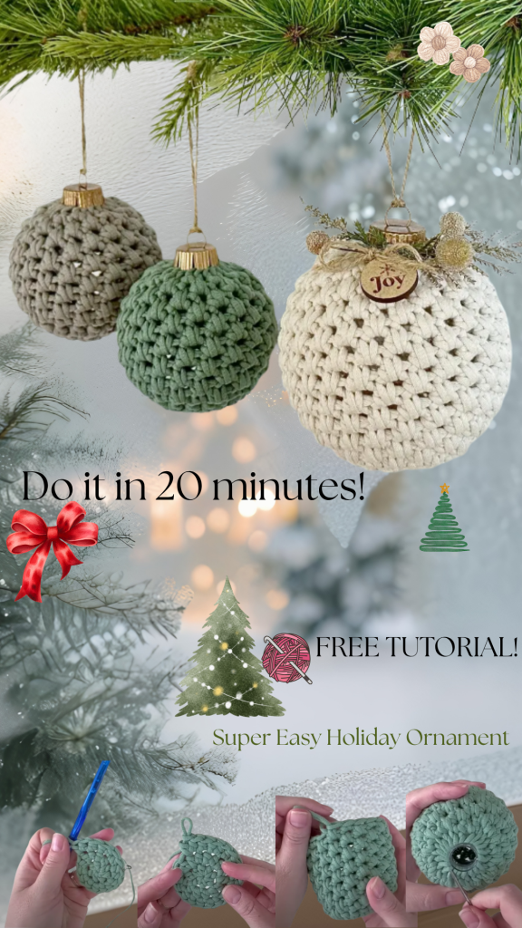 Handmade joy in 20min!🎄✨ Crochet this cozy ball ornament and fill your home with smiles and sparkle! 💖🧶